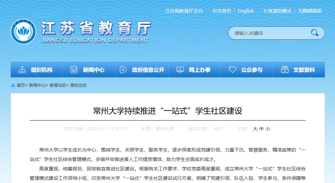 常州大學(xué)以學(xué)生成長(zhǎng)為中心,圍繞學(xué)生、關(guān)照學(xué)生、服務(wù)學(xué)生,逐步探索形成黨建引領(lǐng)、力量下沉、智慧服務(wù)、精準(zhǔn)施策的“一站式”學(xué)生社區(qū)綜合管理模式,多措并舉推進(jìn)育人工作提質(zhì)增效,助力學(xué)生全面成長(zhǎng)成才。